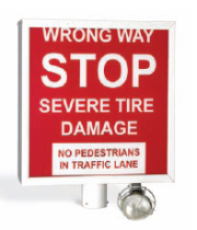 | The DKS Warning Sign is typically used with traffic control spikes to warn drivers that a one-way lane condition exists and that proceeding through the lane in the wrong direction will result in severe tire damage. The red side of the sign warns drivers to stop, while the green side warns them not to back up. With the built-in light sensor, the sign automatically illuminates at dusk and turns off at dawn. * 1615-080 sign is used with stand alone traffic spikes * 1615-082 - Spanish Version * Lighted warning sign includes two 20 watt fluorescent lamps for night illumination * Automatic sensor turns on at dusk, off at dawn * 150 watt flood lamp illuminates traffic spikes at night * Manual override switch * Requires mounting post (not supplied) *1-year limited warratny HOUSING: Galvanized steel housing painted white. MOUNTING: Designed to be mounted on a 3 in. (75 mm) mounting post (not supplied). DIMENSIONS: Height: 24 in. (600 mm), Width: 24 in. (600 mm), Depth: 8 in. (200 mm) |