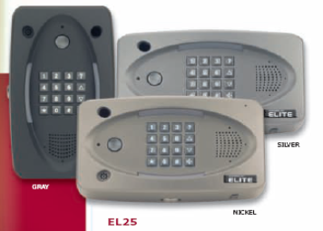 | Elite EL25 Residential and Commercial Telephone Entry System with Expanded Capacity and Enhanced Versatility The EL25 is beautifully engineered for private residences and gated communities, yet fully adaptable for use in apartment buildings, condo complexes, office parks and commercial sites. The EL25 is beautifully engineered for private residences, yet fully adaptable for use in apartment buildings, condo complexes, office parks and commercial sites. Unmatched in its class, the EL25 is designed to easily manage 2,000 FLEX-CODES. And unlike other systems, the EL25 can be purchased as a standard unit or with optional plug-in modules. This lets you choose only the plug-in modules you need depending on the specifics of the job, and allows you to offer custom solutions right off the shelf without special orders. Elite EL25 Expanded capacity. Enhanced versatility. The EL25 is beautifully engineered for private residences, yet powerful and adaptable enough to be used in apartment buildings, condo complexes, office parks and commercial sites. The EL25 is capable of accepting up to 2,000 totally flexible codes. These codes can be programmed as either directory codes or access codes, making the EL25 ideal for virtually any installation. Unlike other systems , the EL25 may be purchased as a base unit or can be ordered with optional plug-in modules. This allows you to choose only the plug-in modules you need depending on the specifics of the job—enabling you to offer custom solutions right off the shelf without special orders. Optional modules let you expand the system to fit your specific needs. The Wiegand output module lets you add card readers and remote keypads. Our RF module provides convenient access through gates or doors with Passport™ transmitters. Plus, the system is now designed to automatically detect the addition and location of each new plug-in module, making installation and programming faster and easier than ever before. Exclusive features • Universal Board - The EL25 and EL2000 share the same main processing board, which makes it that much easier to master the installation and service of both systems. • Remote Access Diagnostics - The EL25 will retain unit alarms within the system event buffer. The unit will record the following alarms—forced door/gate; ajar door/gate—for added security. The EL25 also records unit over voltage and under voltage alarms allowing for simplified troubleshooting of the system. • E-Z Scan - Cards and Passport™ transmitters can be programmed into the EL25 simply by utilizing the card reader or radio receiver installed into one of the plug-in modules. • Voice Prompts - Guides installers through system setup at the unit’s main keypad and provides assistance to end users with the push of a button. (ADA application) • Enhanced Line Noise Tolerance - A new, more robust main board allows the EL25 to be more tolerant of noise associated with the older telephone company equipment, providing a better connection to the unit via modem. • Legacy Database Conversion - Replacing an existing Sentex® Telephone Entry System is a snap with Versa XS™ 2.0 software. Transfer any information retained in your existing Sentex® software database to Versa with the click of your mouse. • Do Not Disturb - Assignable on a tenant-by-tenant basis, this may be programmed through a touch-tone phone or via a pre-programmed time schedule. • Call Forwarding - Allows each tenant to grant or deny access from a remote location. Feature may be set manually or via a pre-programmed time schedule. Standard features • Call Waiting - Allows a person to answer a call from the gate or door while in the middle of another outside call. • Recessed, Lighted, ADA Applicable Keypad - Illuminated keys with help button assistance to audibly announce the next key press on the keypad. • Auto Sensor Input - May be set to automatically dial the residence when a vehicle approaches the property. • Non-Volatile Memory - In the event of a power outage, the database information will be retained in memory. • Daylight Savings/Leap Year - May be set up to automatically adjust for seasonal and annual time changes. • Call Button - Separate user-friendly push button initiates a phone call to the resident or tenant. • Distinctive Ringing - Provides a unique double ring on the system’s main telephone line to distinguish between a standard phone call and a visitor request call. • Entry Codes - Programmable codes can be time-restricted or established as one-time-use only. • Holiday Programming - Up to 16 separate holidays can be defined to override the standard lock/unlock schedules. • Time Zones - Up to 62 different time zones with three segments each can be created for access/no access schedules. • Anti-Passback - Timed anti-passback waits for a pre-programmed period of time to elapse before the code or card can be reused. True anti-passback requires use of an exit reader before entering again. • Security Lockout - Locks out all users for a programmable period of time if several invalid code attempts are made. Alarm can be set to activate if the gate or door is held open or forced open. • Automatic Gate/Door - Unlock Schedule Entry points may be configured to automatically open or lock at set time periods. • Transaction Monitoring - A minimum of 4,000 transactions are stored in the unit including date, time, unit ID and transaction. • Activity Reports - Property managers have the ability to print database, system and history reports. • Remote Updates - Firmware updates and upgrades may be made via a remote computer and a modem connection. |