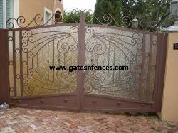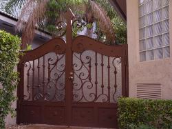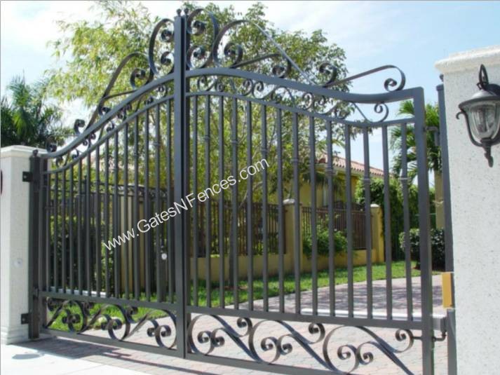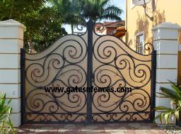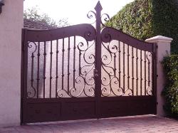 | In this page you will find one of the largest Wrought Iron Fence and Gate Result selection in the net. A great selection of Security Gates, Safety Gates, specializing in Front Gates, Driveway Gates, known as the Gate World at your finger tips. We have most brands of Automatic Electric Driveway Gate Openers, brand name like Elite, Power Master, Eagle, and others, with many Door Gate Operating Devices. All the Driveway Metal Gates can be made of Wrought Iron or Aluminum, the Aluminum Driveway Gates are lighter and painted through a powder coat process which is oven baked, and is superior in the Aluminum Metals. Aluminum is also less expensive to ship and with Automatic Driveway Gates, the Electric Gate Openers life of the unit will be extended, which thats a couple of reasons why we recommend the Aluminium Driveway Gates over the Wrought Iron Driveway Gates. Baby Safety Gate, Child or Pet Safety Gates are also available. In the pictures of all the Front Entry Gates, Driveway Gates, Garden Entrance Gates that are listed below just click images to learn more about the Gate Designs that are available and pricing. Although we offer a wide selection or Ornamental Designs or Decorative Designs, we can design and manufacture any style in aluminum or wrought iron metals. L. A. Ornamnetal & Rack Corp also offers Fences, Garden or Walk Thru Gates to match your driveway gates. With over thrity five years of experience in manufacturing and designing elegant, custom, or exotic Aluminum Driveway Gates and Fences, our past and future customers can have peace of mind that they are receiving quality workmanship |