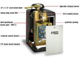 Elite Gate Openers CSW200 UL 1HP Heavy-duty, one-horsepower commercial swing gate opener. The CSW200UL1HP is our most powerful swing gate opener. Equipped with two 1⁄2 HP motors and a heavy-duty, 900:1 double transmission, it is the perfect choice for large, heavy wrought-iron gates. With 250 lbs. of pulling torque, the unit is capable of 60 cycles per hour on gates weighing up to 1,000 lbs. and up to 20 ft. in length. |