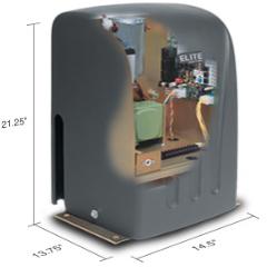 Elite Gate Operators SL 3000 UL DM Dual-motor/high-temperature commercial slide operator Unlike any other slide gate operator, the SL3000ULDM features a patented dual-motor drive system for superior performance in hot weather climates such as desert environments. Engineered for high-traffic commercial applications, the unit is designed to operate without overheating, using one motor to open the gate and the other to close it. Capabilities include continuous operation with gates weighing up to 800 lbs. and up to 37 ft. in length. |