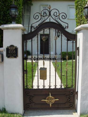 | Our Privacy Gates proudly represent a level of artistic skill and craftsmanship that shows an appreciation for the best combination of aesthetic view and functionality. A great Aluminum Privacy Gate can immediately lend an identity and class to a property that makes even the best and most beautiful fences stand out. A metal gate is a good choice because it will last a long time especially our gates that are made in Aluminum. Although it may cost more initially, it will require a lot less maintenance over time, they are rust proof and come in a variety of colors that do not require paint making them virtually maintenance free. An old fashioned stand by is the chain link garden gate, less expensive but is not nearly the most attractive option Technically speaking, wrought iron is rarely produced today and the last mill that produce wrought iron material here in the US closed down in 1985. Due to the expense of production, true wrought iron has been consigned to historic preservation projects. Most of the landscape products of today called wrought iron, including wrought iron garden gates, are made from a material known as mild steel, is call wrought iron as a Mechanical definition but it is actually mild steel, hard to maintain specially on costar area, that is why we offer and recommended Aluminum.. Our Iron Gates are manufactured from steel, or from extruded Aluminum. They are designed to provide years of maintenance-free operation. Gate hinges and hardware have been engineered to withstand the rigors of manual or automatic gate opening. A powder-coat finish provides superior corrosion resistance, while also making the gate virtually maintenance-free. Choose from a complete selection of styles, options, and colors available from no other manufacturer |