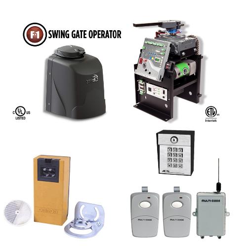 | Viking F1NX Kit 4 Commercial Swing Gate Operator, 1 Monitor Photo Safety Cell, 1 Receiver, 2 Remote Controls, 1 CP3 Cartell Copper Exit Wand, 1 Keypad -- Add to cart for Price |